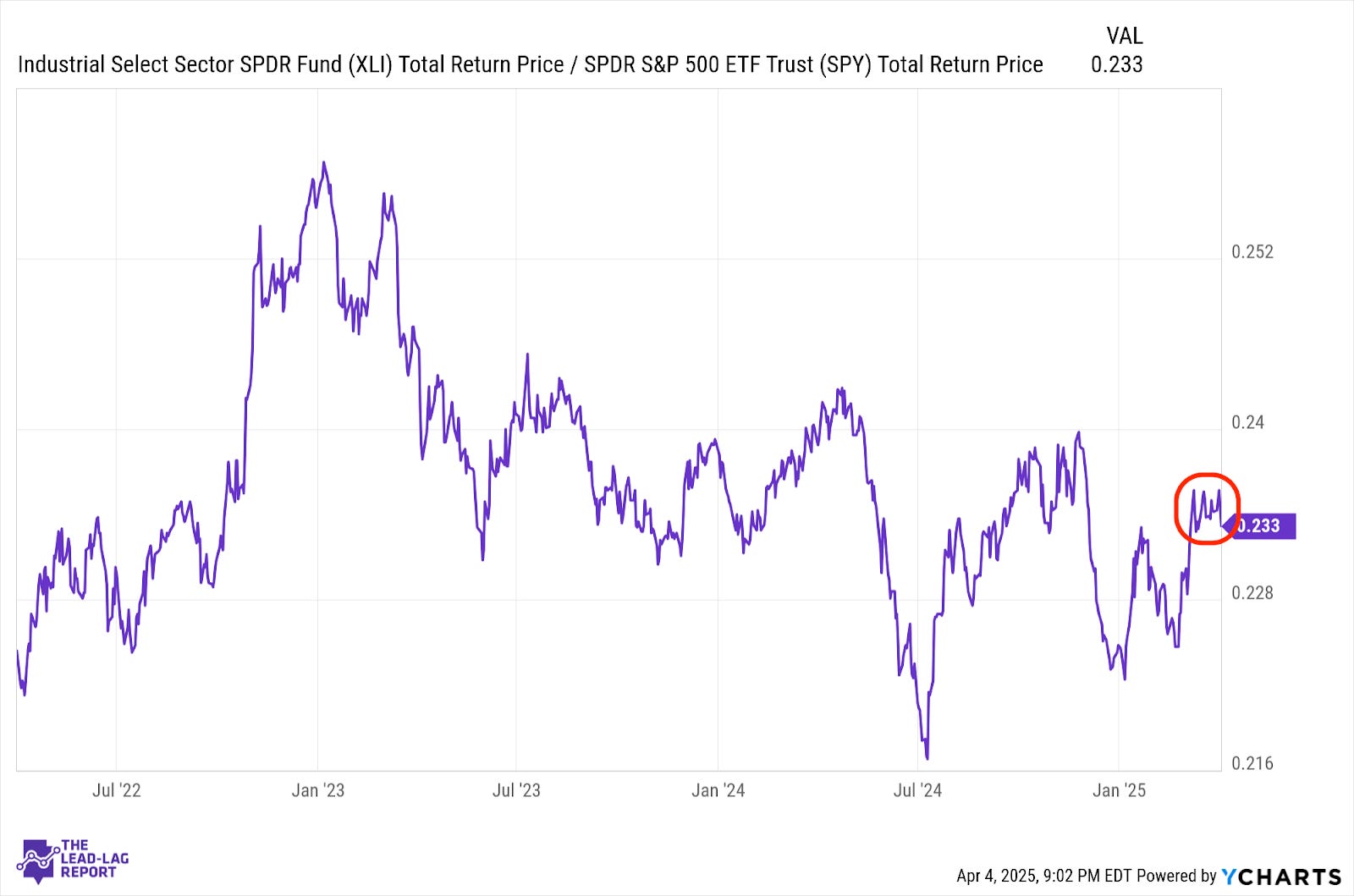 Even though tariffs are likely to have a significantly negative impact on the global economy, industrial stocks are continuing to hold up relatively well here. The start and stop nature of tariffs by the Trump administration could mean that the market is pricing in a worst case scenario when one might not exist, but it’s tough to see this sector not taking a hit once the data starts rolling in.