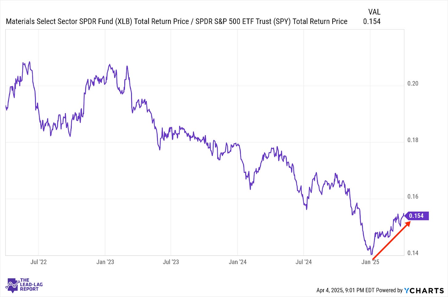 Commodities are doing what they should be doing in this environment by providing some non-correlated diversification benefits. Even though the sector has become quite bifurcated with energy and metals doing particularly poorly, the value nature of this sector is helping to prop up the floor of what’s likely to be a very negatively tariff-impacted group.