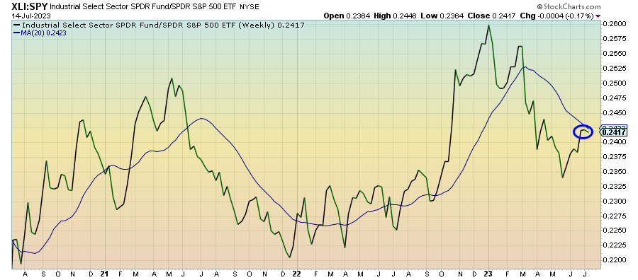 Outside of growth & tech stocks, industrials are the one area of the market that’s been consistently outperforming over the past couple months. Obviously, an investment here is a belief that the economic expansion will continue, although other cyclical areas of the economy are still mixed right now. Last week’s downturn is likely just a function of the low inflation rally.