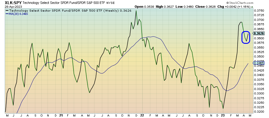 Tech stocks got a big boost last week from positive mega-cap earnings reports, but that may still be masking underlying weakness. The cap-weighted tech sector gained 2% last week, but the equal-weighted tech sector lost 1%. As was the case during the post-COVID rally, a handful of mega-cap stocks are driving this market. It’s not as strong as it looks.