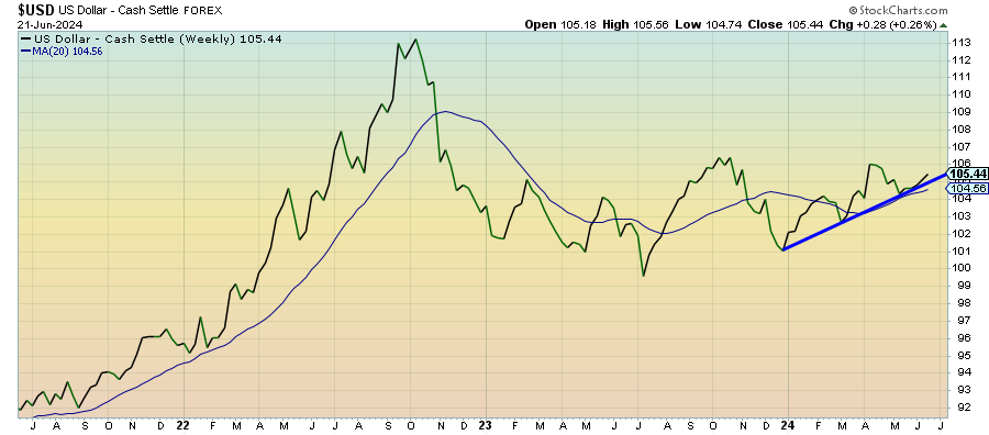 After a rough start to the 2nd quarter, the dollar is picking up strength again. The yen/dollar rate nearly broke through the 160 level over the past few days and puts it in prime position for another BoJ intervention. European currencies have also backed off a bit following a significant deceleration in expansion in June. Barring some major yen support in the short-term, momentum is firmly in the dollar’s favor at the moment.