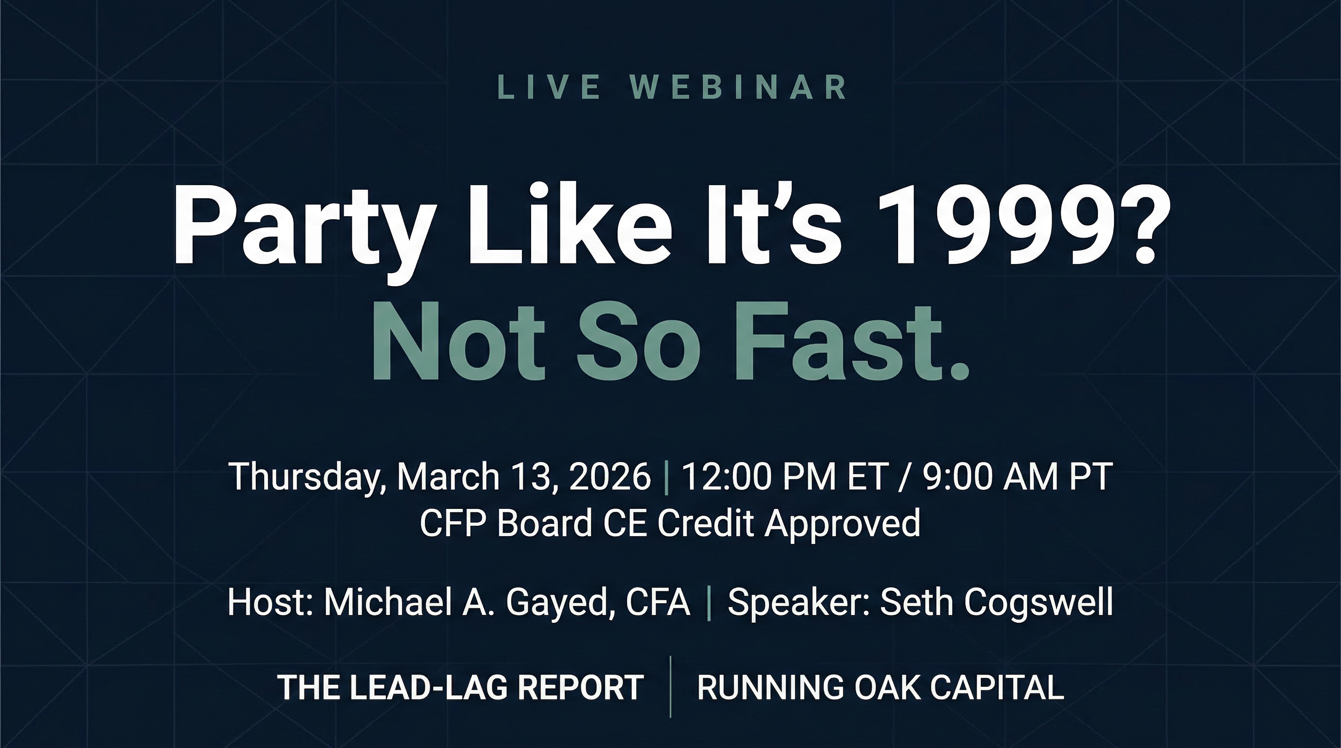 I’m hosting a webinar with Running Oak Capital that I think every advisor and allocator needs to see. Seth Cogswell and his team have put together one of the most compelling market presentations I’ve come across — a Prince-lyric-themed walkthrough of where markets are, what’s breaking beneath the surface, and why their Efficient Growth strategy (RUNN) is built for exactly this moment.