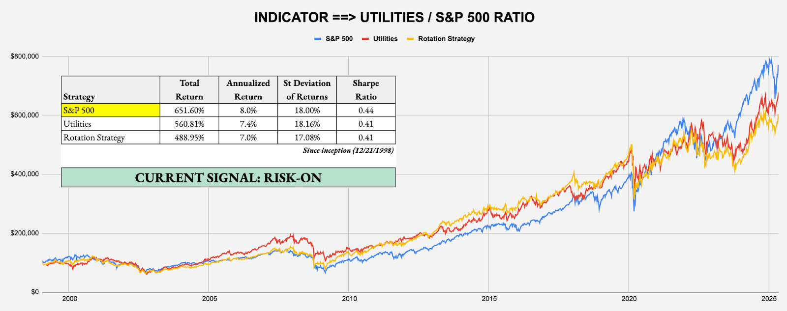 How To Interpret the Signals: Within each strategy, there is a risk-on and risk-off investment recommendation, with the risk-off option being the more conservative of the two. When a particular signal indicates that investors should be risk-off, for example, subscribers should consider investing in the risk-off option and avoiding the risk-on option. The opposite, therefore, would be true when the signal flips to risk-on. In each strategy, you’d always be invested in one option or the other.