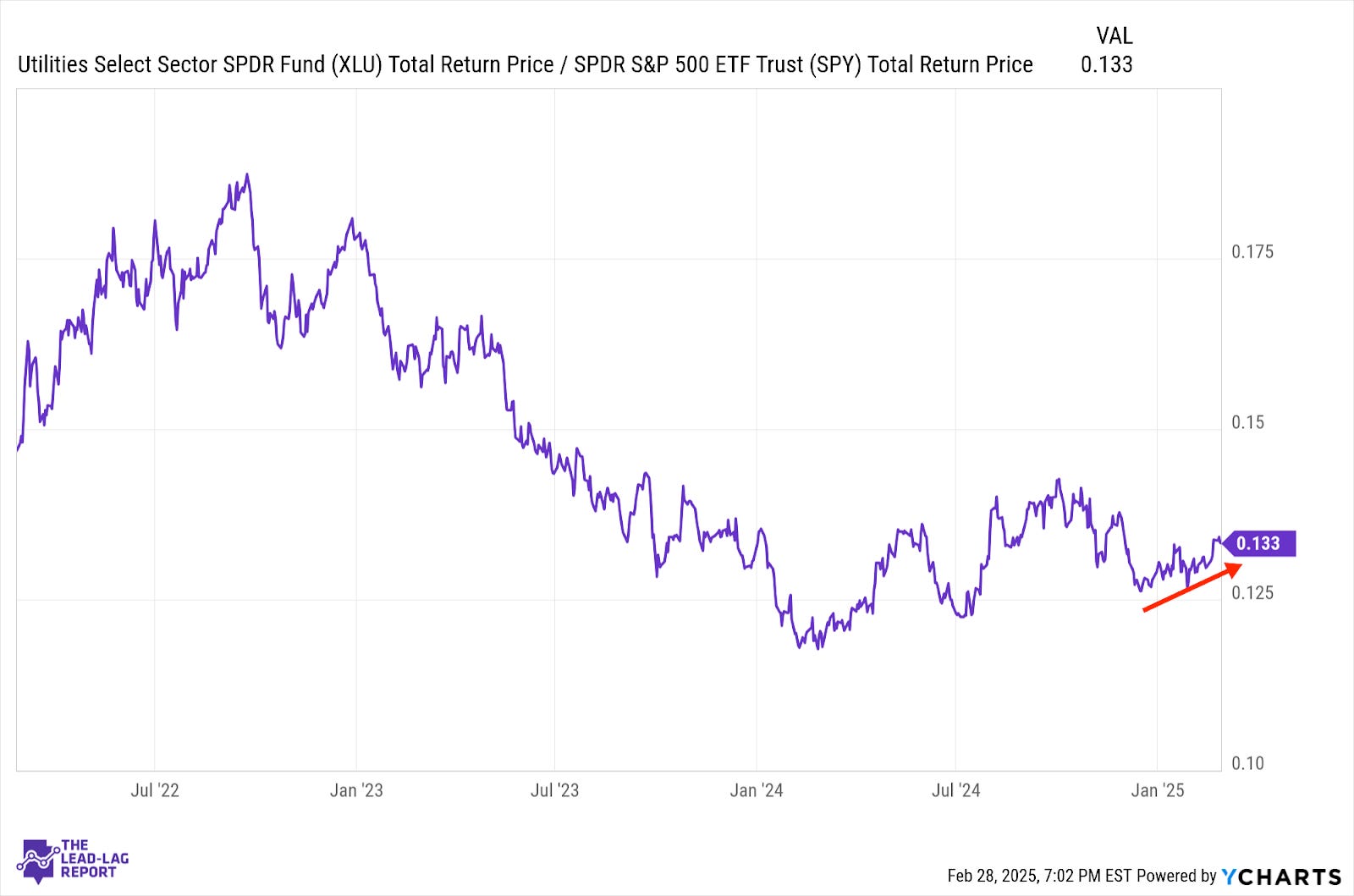 Utilities have pretty consistently been signaling risk-off throughout 2025 and that trend appears to remain firmly in place. This sector has had periods of leadership over the past year, but it’s often had to go it alone. Now that it’s getting the support of other defensive sectors, value, low volatility and Treasuries, there’s a good chance that this trend has an opportunity to push higher for longer.