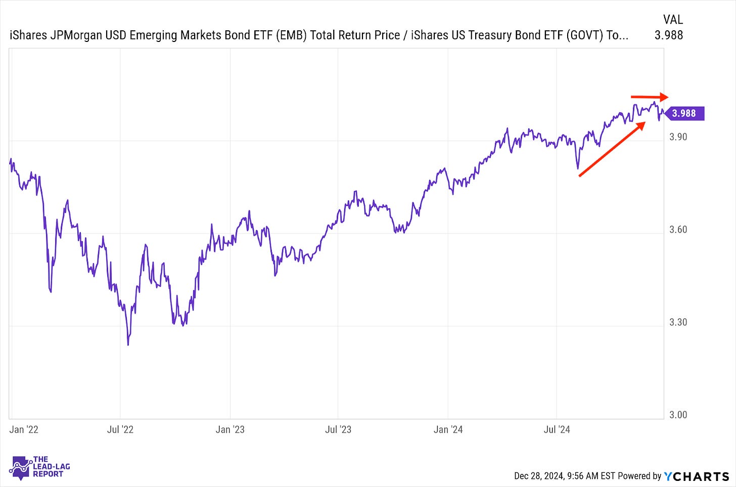 After a banner 2024, EM debt might be losing a bit of steam. Thanks to an overall improvement in credit quality, general outperformance from lower quality bonds and some central bank assistance, emerging markets bonds delivered one of the better performances in the fixed income space. This coming year could depend heavily on U.S. foreign policy and whether tariffs and other measures begin to hinder overseas economic growth.
