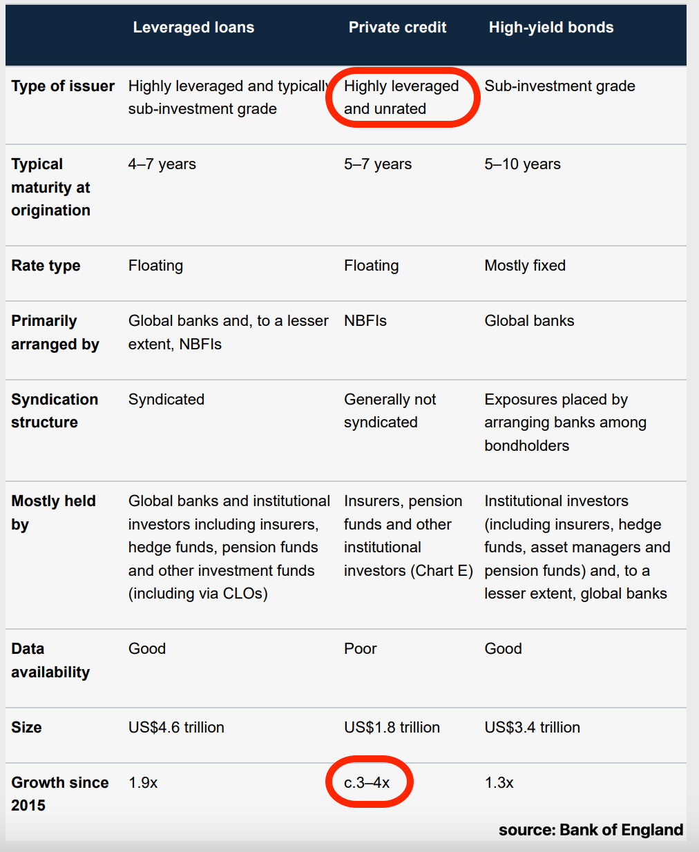 There are a couple of factors in this graphic that directly relate to how potentially dangerous the private credit market is.