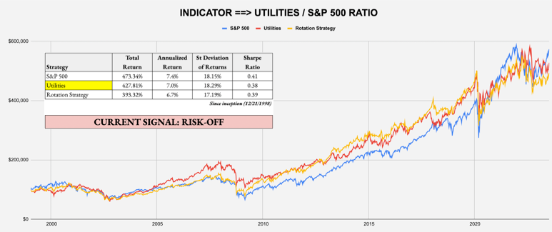 The sharp move higher in defensive assets and themes during the 2nd half of last week may be putting the markets on notice. Even during the banking crisis and debt ceiling standoff earlier this year, defensive outperformance was mixed and inconsistent. This is the first time in 2023 where virtually every risk-off asset class - utilities, staples, low volatility, value and Treasuries - all participated in a major way at the same time. With the utilities signal joining the Treasuries signal in indicating short-term risk-off conditions, investors would be wise to begin tempering expectations now and preparing to pivot should we see a continuation this week.