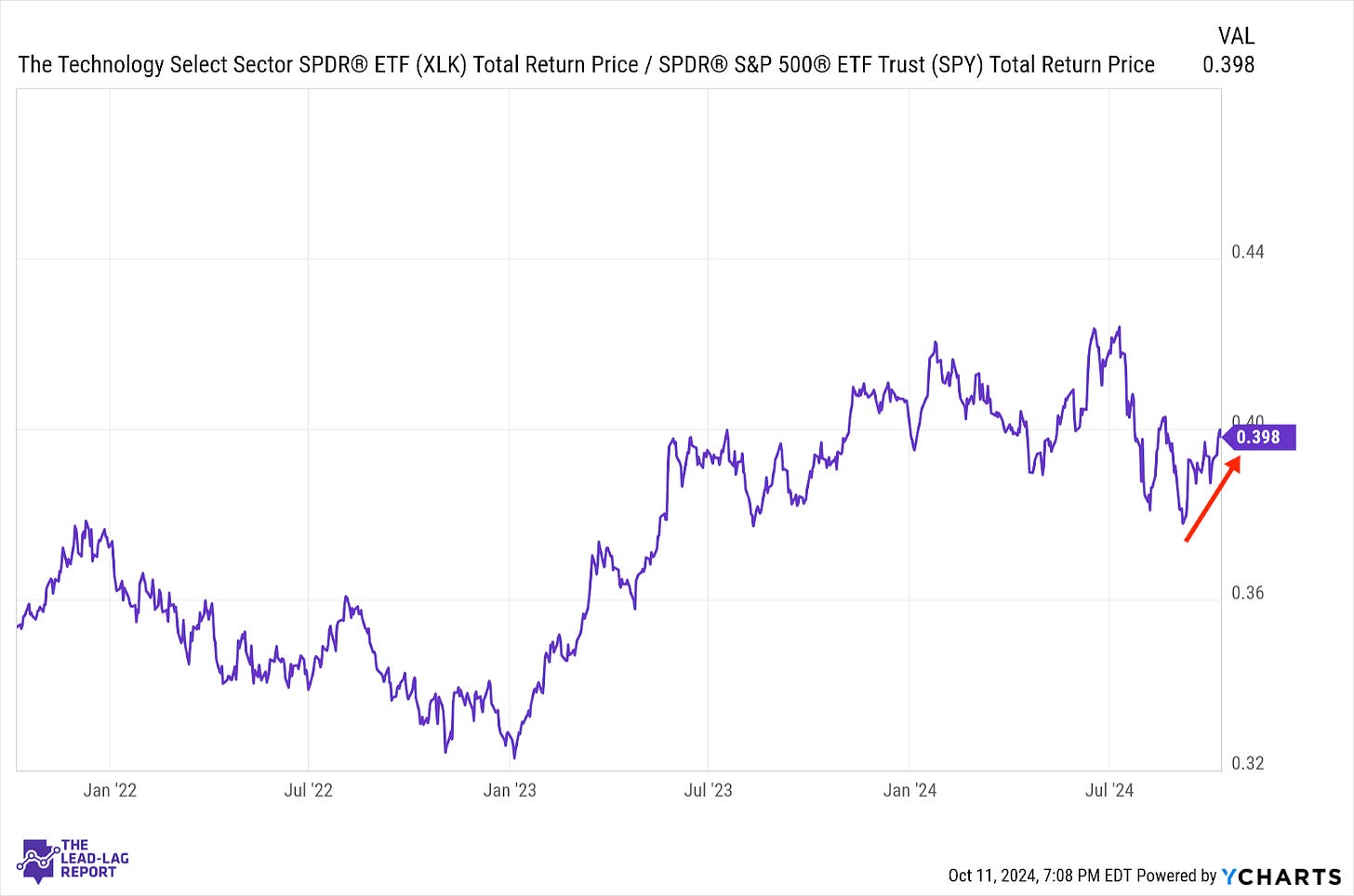 Below is an assessment of the performance of some of the most important sectors and asset classes relative to each other with an interpretation of what underlying market dynamics may be signaling about the future direction of risk-taking by investors. The below charts are all price ratios which show the underlying trend of the numerator relative to the denominator. A rising price ratio means the numerator is outperforming (up more/down less) the denominator. A falling price ratio means underperformance.