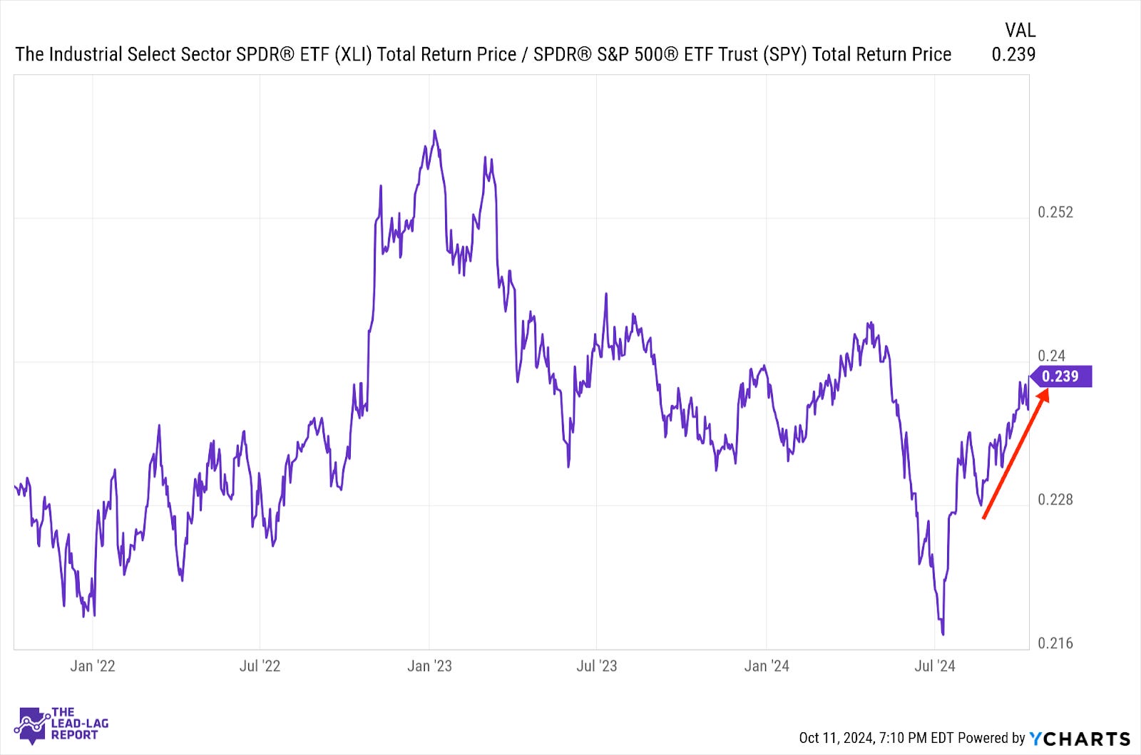 Perhaps no sector has benefited as much from the steady growth/Fed cutting narrative as industrials have. Economic conditions are looking favorable for a continued cyclical rebound and easing monetary conditions for the next several quarters should provide another tailwind. As long as inflation doesn’t start getting out of hand, there’s a roadmap for this sector to continue being a leader.
