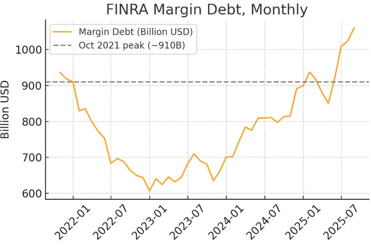FINRA, Margin Statistics Monthly Report, August 2025.