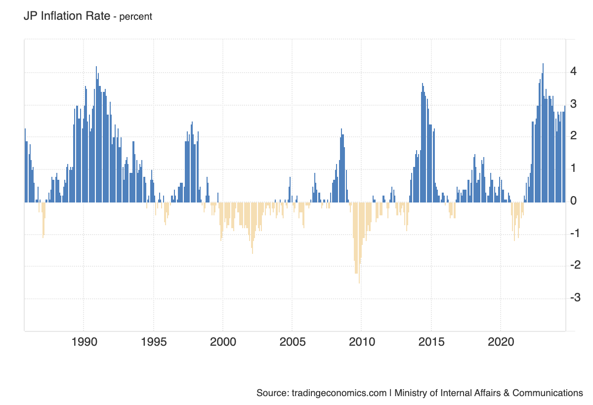 Today, however, that dynamic is changing. The annualized inflation rate in Japan has been consistently running north of 2.5% since early 2022, including a peak of more than 4% in early 2023. This would mark the longest stretch of sustained high inflation since the late 1980’s and into the early 1990s.