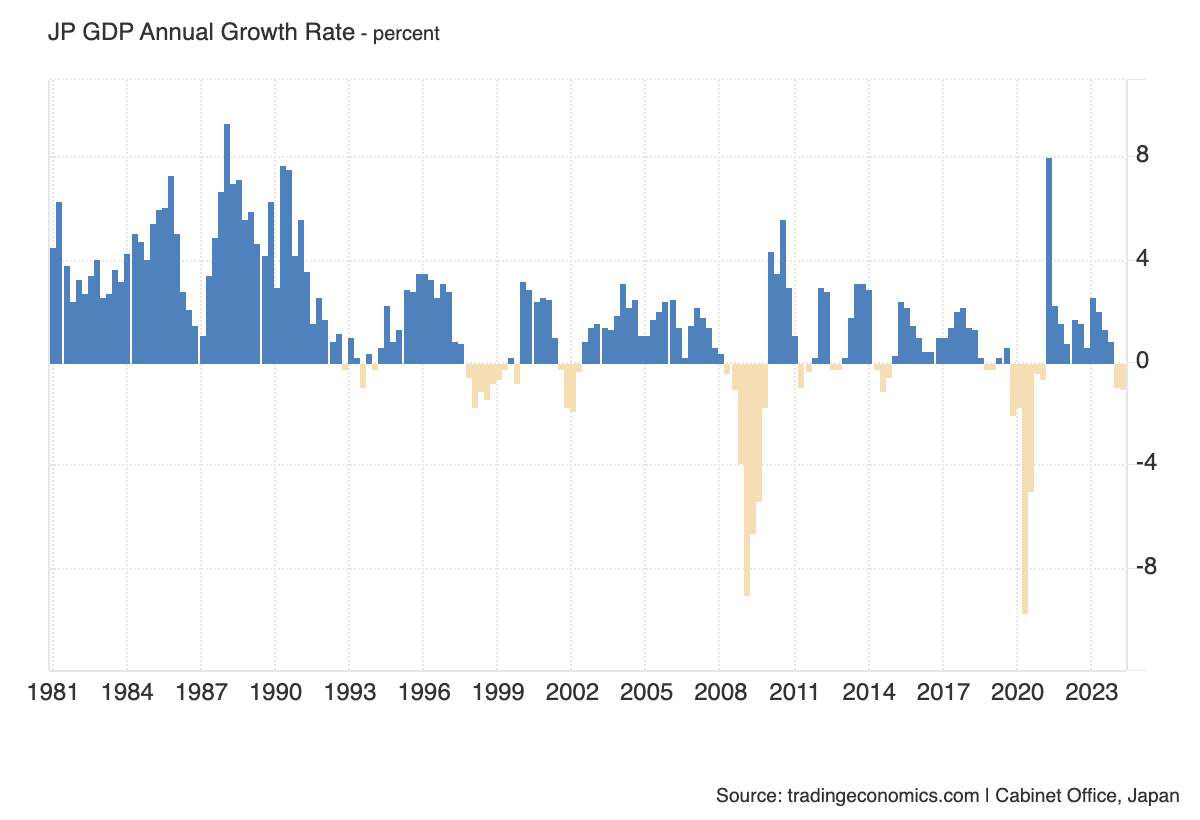 For years, the Japanese government has kept monetary conditions ultra-loose in order to ignite an economic revival. For the most part, it’s failed to deliver any consistent results. The economy has had its periods of ups and downs, but you’d have to go back to the early- to mid-2000s to find a time when the economy was consistently growing at a 2% rate. Before that, you’d have to look at the ‘80s and ‘90s.