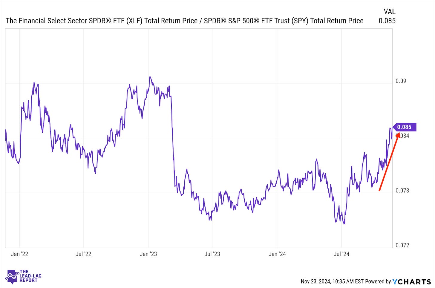 Financials continue to be the standard bearer among the S&P 500 sectors, but the action is starting to turn a little more choppy. Improving lending conditions, an uptick in M&A and the deregulation theme have all worked in this sector’s favor. However, I believe the possibility of higher inflation in 2025 is starting to weigh on that optimism. Higher for longer interest rates and the threat of higher costs will weigh on consumers and that will spill over to this sector as well.