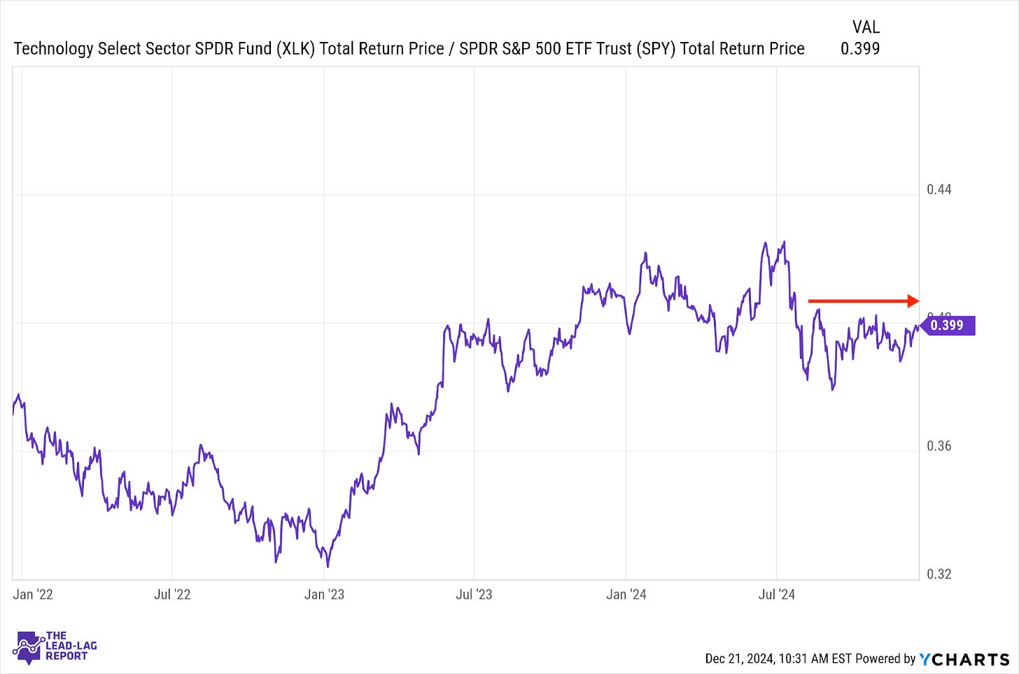 Last week’s risk-off pulse reversed the recent progress in this sector, but it doesn’t look like the uptrend is necessarily. The heavy influence of AI development by the sector’s two mega-caps will almost certainly be a major factor in the upcoming year and should be a tailwind as long as economic sentiment doesn’t sharply reverse. The anti-tech regulatory headwind could also be a bigger theme in the new administration.