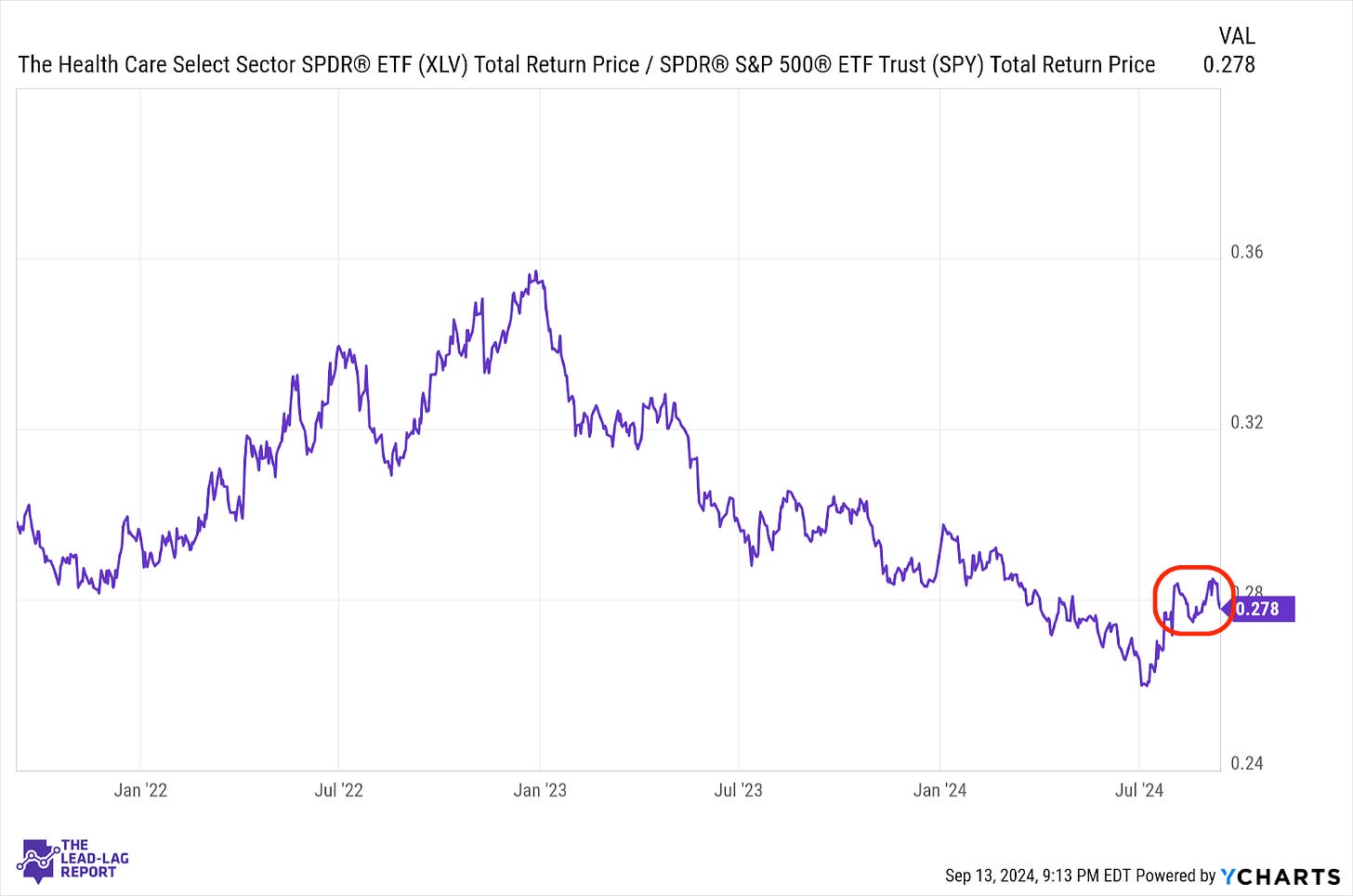 Defensive strategies are taking a bit of a breather, but are unlikely to be done yet. The market volatility we’ve seen in recent weeks, both to the upside and downside, has been higher than normal. Higher volatility generally leads to lower stock prices in the long run. Healthcare remains a fairly good proxy of market sentiment and if this ratio heads higher again, it would be a pretty strong risk-off indicator.