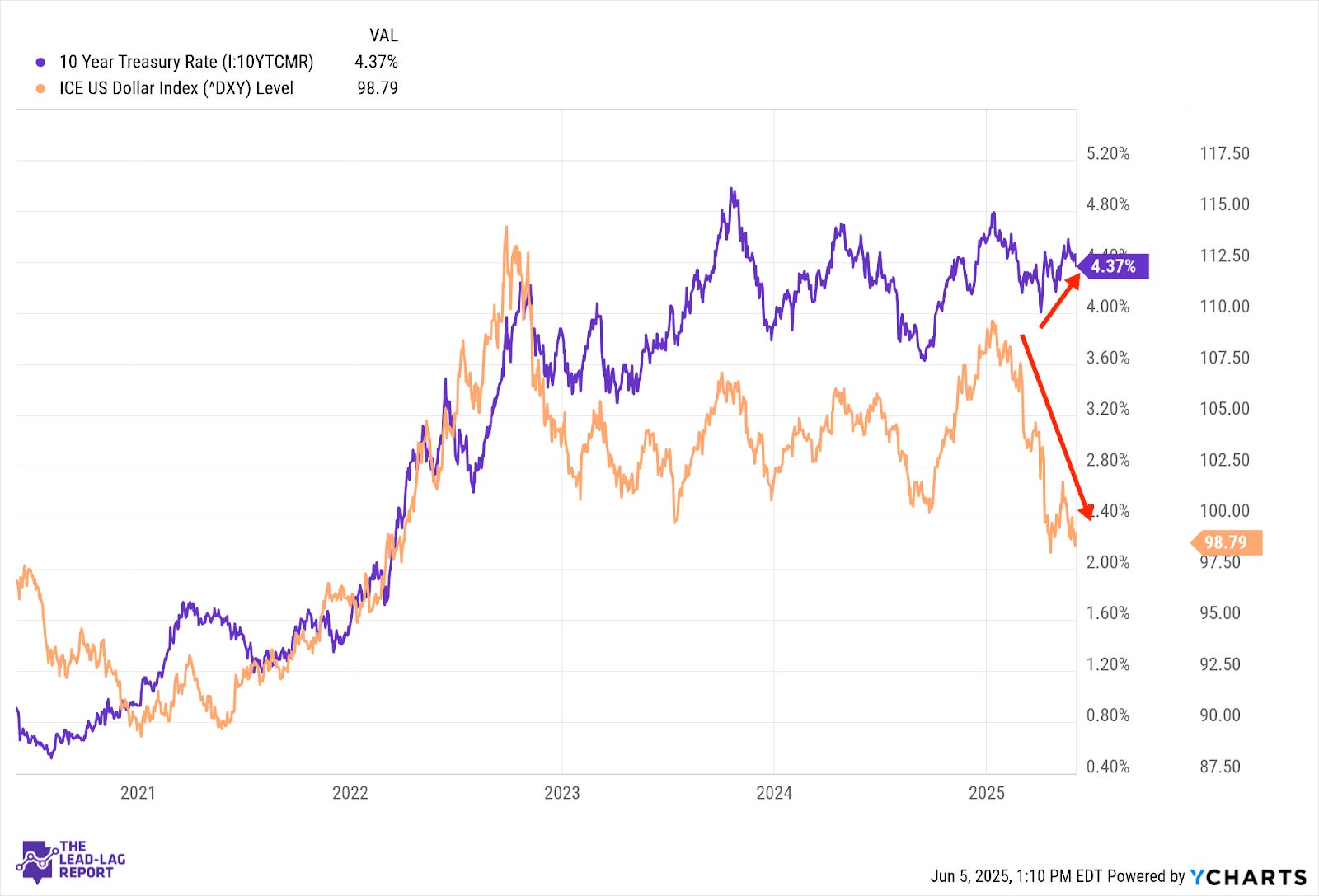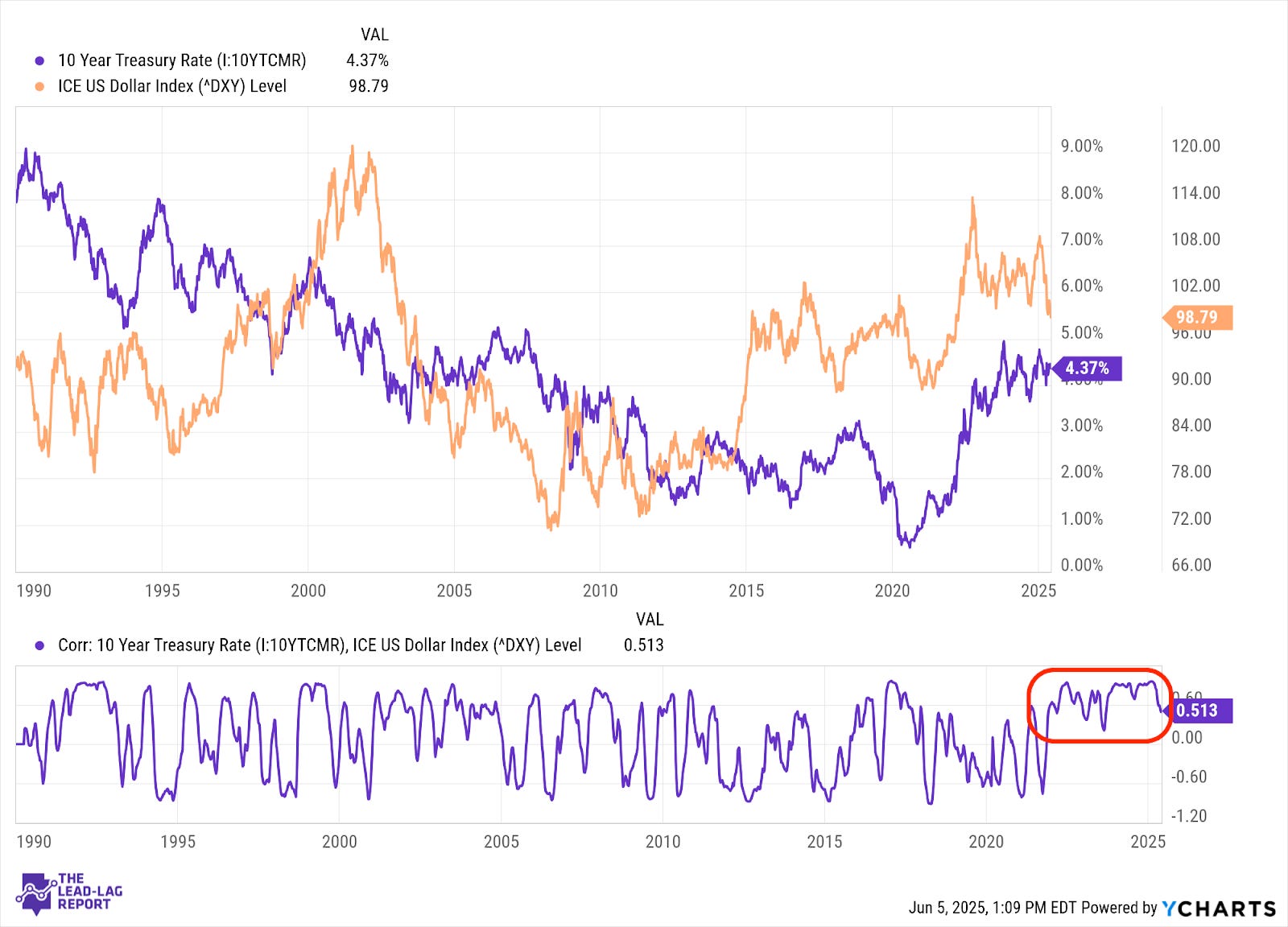 One of the biggest right now is the relationship between the dollar and long-term Treasury yields. Spoiler alert: the relationship has broken.
