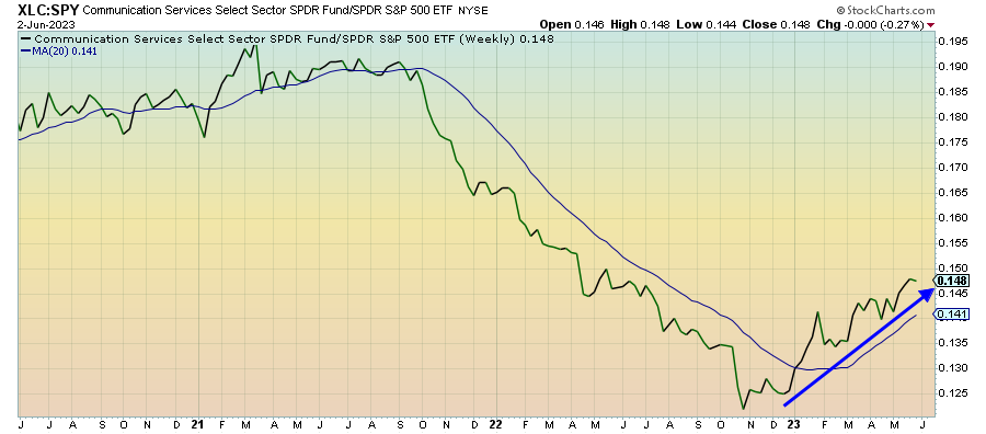 Communication services continues moving higher in lock step with the tech sector. The same things we’ve said about tech can pretty much apply here as well - Facebook and Alphabet are almost entirely driving this sector’s gains and remain vulnerable to a pullback. Even though investors are no doubt happy with 2023’s performance, the idea of having just two stocks accounting for more than half of the sector puts it at extreme idiosyncratic risk.