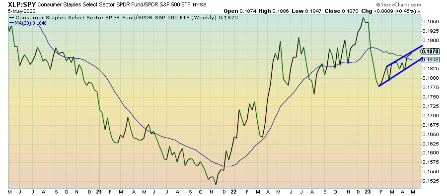 Even as investors continue to remain willing to push into risk assets, consumer staples is the one defensive group that’s still leading the market higher. Earnings results were generally pretty good for this sector and consumer spending for core expenses is still healthy, even as discretionary spending slows. Short-term sentiment has swung positive again and that could slow some current momentum, but this sector still looks to be positioned nicely in 2023.