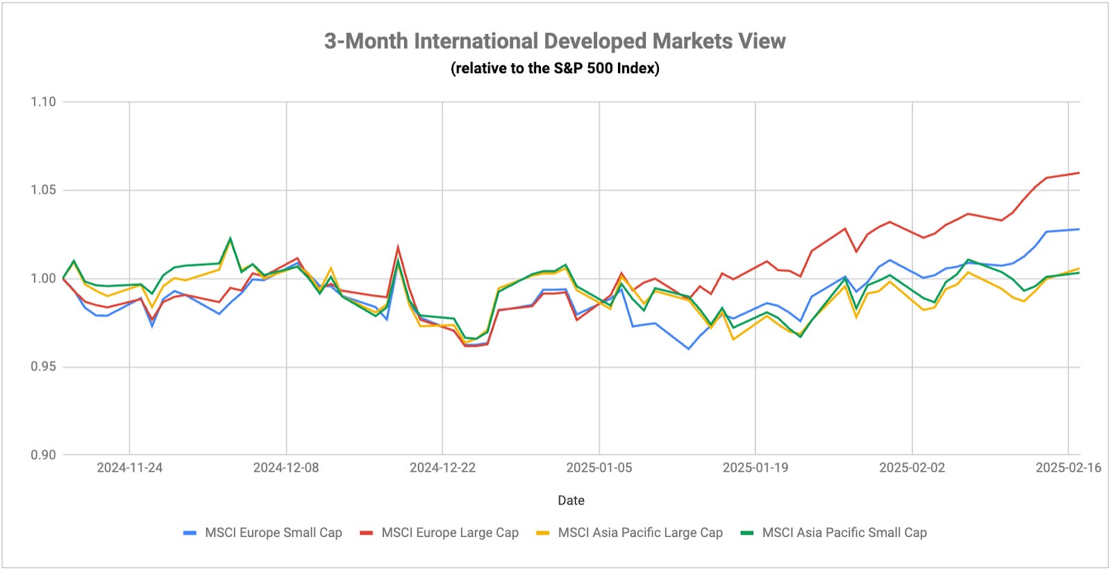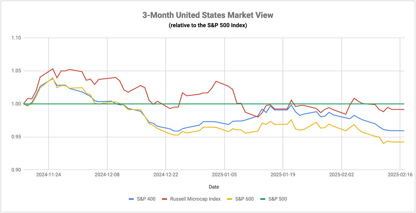 Large-caps have begun re-assuming the lead over small-caps again and the reasoning probably isn’t surprising. We’ve seen many times over the past couple years that investors haven’t necessarily been inclined to abandon stocks for bonds, but they have been willing to rotate into the bigger names when there are potential signs of trouble. Even though the S&P 500 and Nasdaq 100 are establishing new all-time highs, there does seem to be some damage done to sentiment by the ongoing threat of tariffs and current mass layoffs being executed by DOGE. Perhaps that’s why retail sales took a dive in January; people are growing more concerned about their personal situations and are tightening the purse strings a bit.