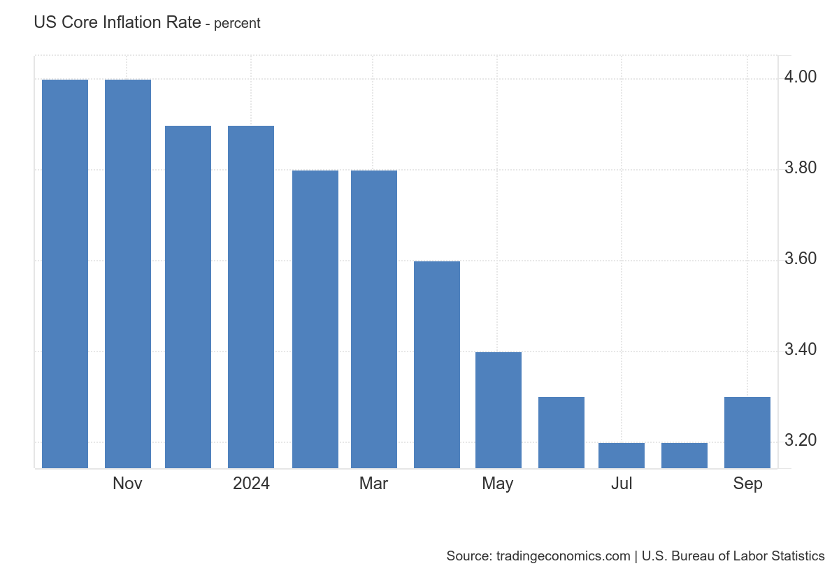 Core inflation had been trending lower throughout the past year. It bottomed in July and August, but ticked unexpectedly higher in September. Now, this is a 0.1% increase and is just one month, but this could be an important signal. Core inflation has been sticky ever since 2022. Also consider that the month-over-month readings for both August and September were 0.3%, which would work out to nearly 4% annualized. With rent and services inflation also running at nearly a 5% rate.