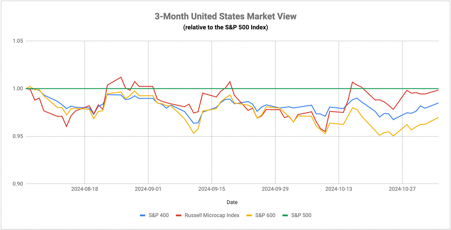The equity markets also seem to be having some second thoughts. Some of the Trump trades, which had been moving higher over the past couple of weeks, have begun to balance out again, yielding no clear sign as to which way the market is leaning at the moment. The VIX has moved higher lately, which generally isn’t surprising in the lead-up to major elections. The likeliest outcome regardless of who wins will be that heavy government spending will continue. Liquidity tends to be positive at the margins for risk assets and that tailwind will almost certainly exist for the foreseeable future. While different sets of sectors will outperform depending on who wins, the overall positive sentiment for equities seems to be fairly firmly in place for the time being, although the bond market may upend some of that momentum.