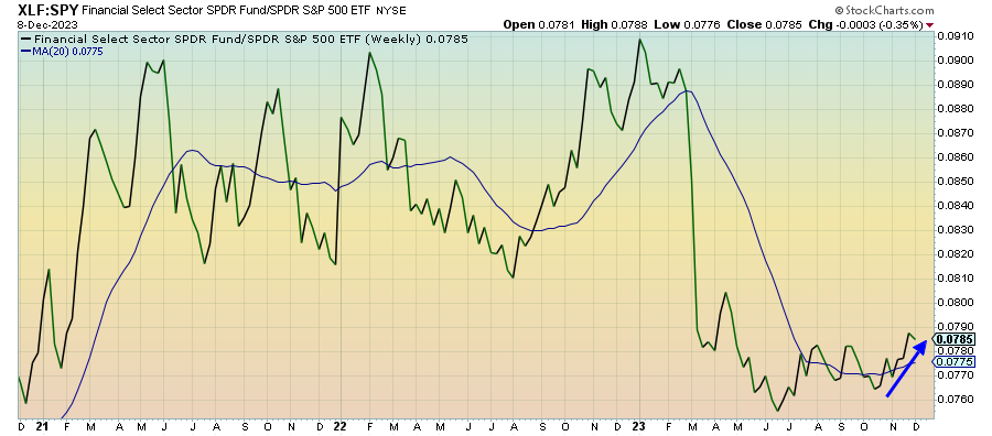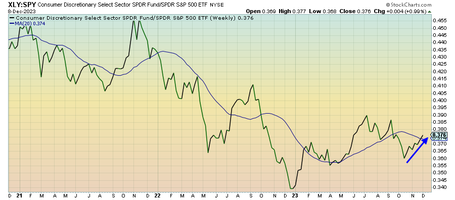 Below is an assessment of the performance of some of the most important sectors and asset classes relative to each other with an interpretation of what underlying market dynamics may be signaling about the future direction of risk-taking by investors. The below charts are all price ratios which show the underlying trend of the numerator relative to the denominator. A rising price ratio means the numerator is outperforming (up more/down less) the denominator. A falling price ratio means underperformance.