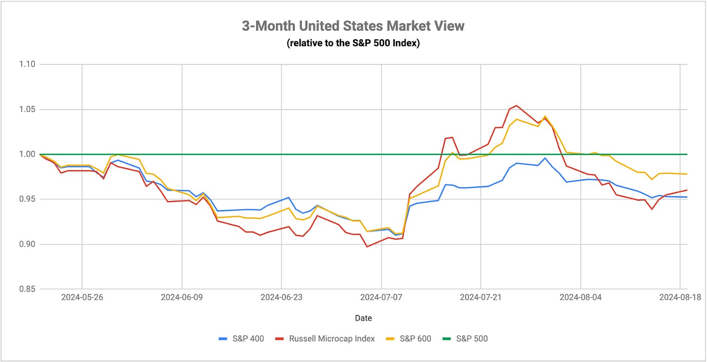 Market sentiment is pretty much back to where it was pre-VIX spike, which is to say that we’re back to an environment dominated by mega-cap tech. There are a couple of differences this time around though. The magnificent 7 stocks aren’t dominating in quite the same way that they were just prior to the reverse yen carry trade unwind. Communication services stocks are not really participating this time around either as it continues to disconnect from tech. Discretionary stocks are still mostly lagging, demonstrating that not all growth areas of the market are doing quite so well. If we also consider that credit spreads are still elevated compared to where they were a month ago, there’s a bit less confidence being signaled in the markets right now. Three of my signals are still risk-off, while gold and Treasury prices are still trending higher. This is all pretty consistent with my stance that investors are being sucked in by another bear market bounce. We already know that there are a number of economic signals indicating caution, but the fact that a number of financial market signals are confirming the same suggests that this market rebound isn’t as strong as it might seem.