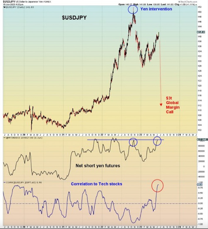 The numbers support it too. Net short positions in the yen are at near record highs and the dollar’s correlation to tech stocks is also at multi-year highs.