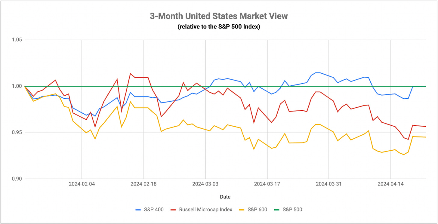 While I noted earlier this week that I believe we could be early in the cycle favoring utilities, I think we’re looking at a fairly specific timeline where the sector could be signaling a volatility spike. Yesterday’s leaders/laggards piece showed that utilities have been outperforming the S&P 500 since February, but the trajectory has really accelerated in just the past few weeks. Historically, sharp outperformance like we’ve seen produces about a 3-4 week window following the signal where conditions really favor a volatility spike. And I think that signal is still holding this week. Most investors will look at the S&P 500 and see a 2% rebound and think that the bottom is in and a reversal has begun. In reality, utilities are still holding here. They’re only underperforming by a negligible amount. That indicates to me that this risk-off trend we’ve seen over the past several weeks is still in place, which means that volatility watch is still on.
