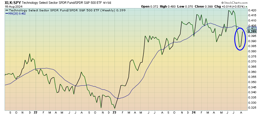 Communication services stocks have again disconnected themselves from tech in recent weeks. As tech plunges and rallies, this sector has remained remarkably steady with the broader market. It looks like the magnificent 7 stocks aren’t having quite as much pull in this current rally as they have over the past 18 months. Perhaps that’s a sign that the market is broadening out (unlikely). Perhaps it’s a sign that previous market leaders are weakening.