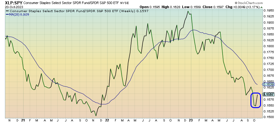 For most of 2023, consumer staples have failed to confirm most short-term defensive shifts within the equity markets. That’s changed in a big way over the past couple weeks. I’ve said in the past that this was the one sector that needed to begin confirming the moves in other defensive strategies before we could really say they had the potential to be sustainable. We’re getting that now and that could be a bad sign for risk assets.