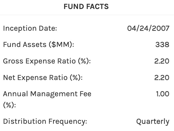 The fund uses 17% leverage currently, which is kind of a nice middle ground in that it’ll make a difference, but it won’t be extremely difficult to get your money’s worth. The quarterly distribution schedule will likely turn off some looking for monthly income. International fixed income funds tend to pay less frequently due to the volatility of when payments are received.