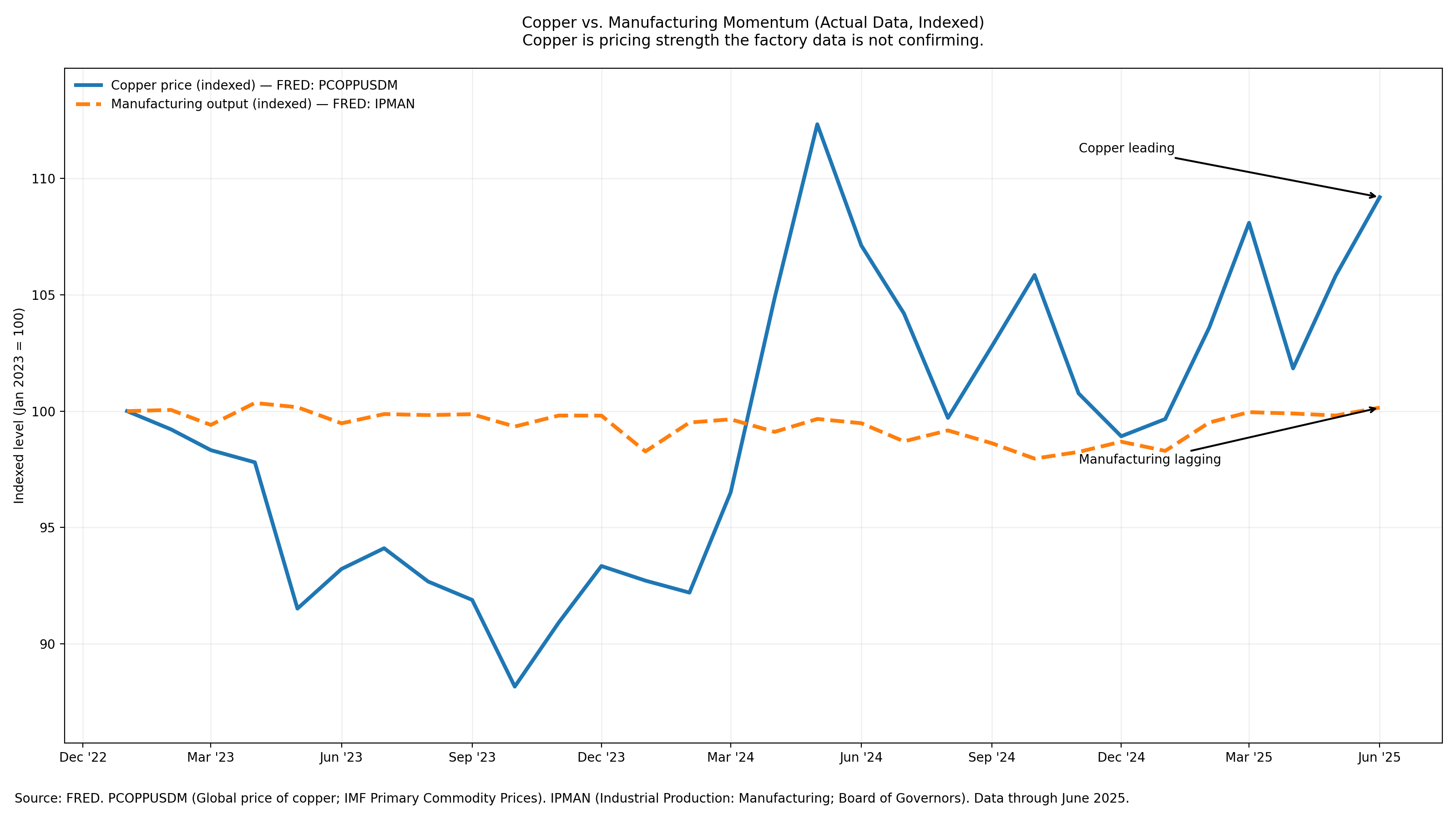 In late 2025, copper prices swung sharply on profit-taking linked not to physical demand, but to volatility in technology stocks.³ When a base metal trades off sentiment surrounding equity speculation, it signals that fast money has entered the trade. Fundamentals may justify higher prices over time, but they rarely explain vertical moves absent speculative leverage.