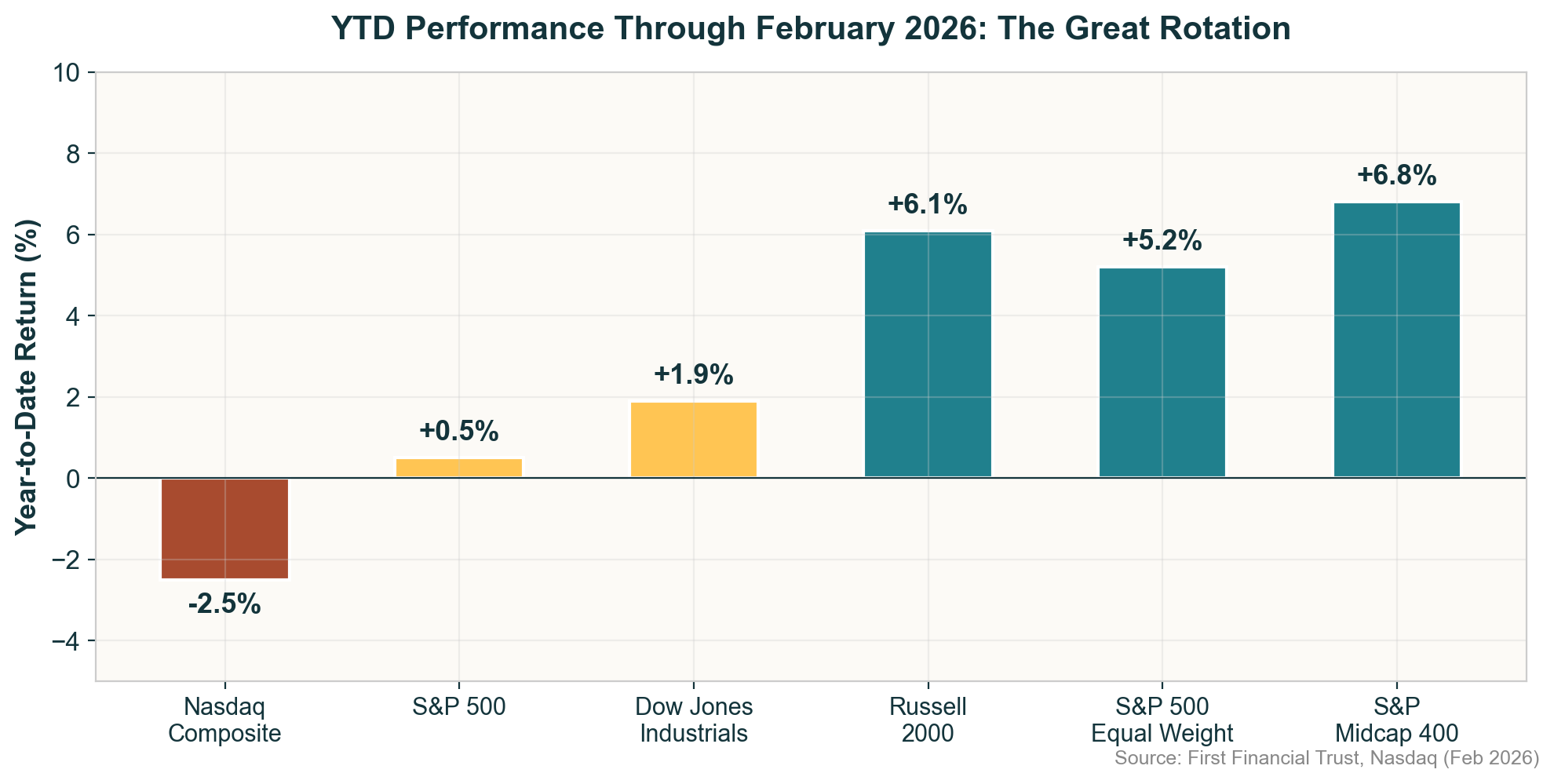 Figure 1: Broad indices mask a dramatic rotation away from tech and toward small/mid-caps and equal-weight strategies.