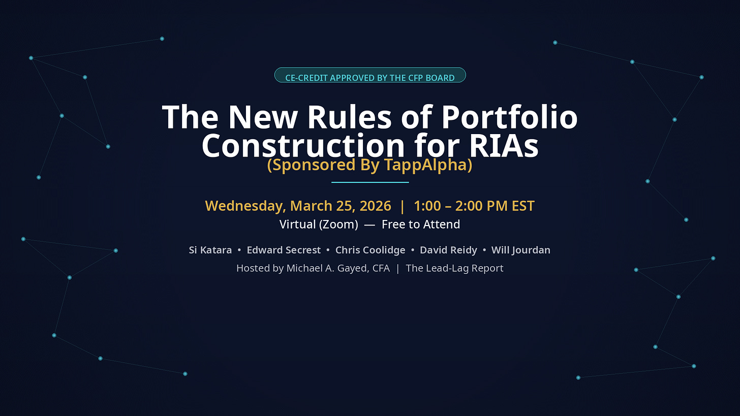 I don’t say this lightly: this is one of the most valuable hours you’ll spend all quarter. If you’re an RIA looking to sharpen your portfolio construction approach, hear what your most forward-thinking peers are doing, and pick up CE credit in the process — this is it.
