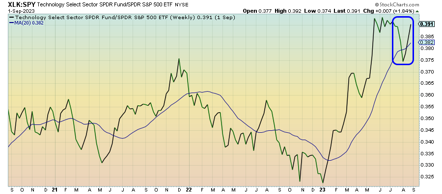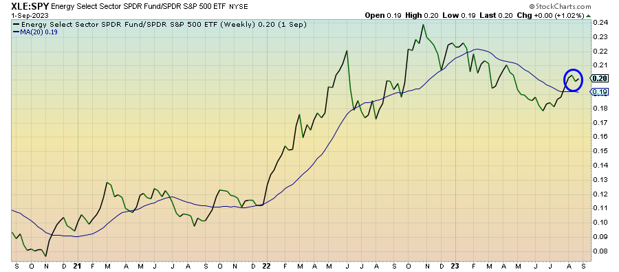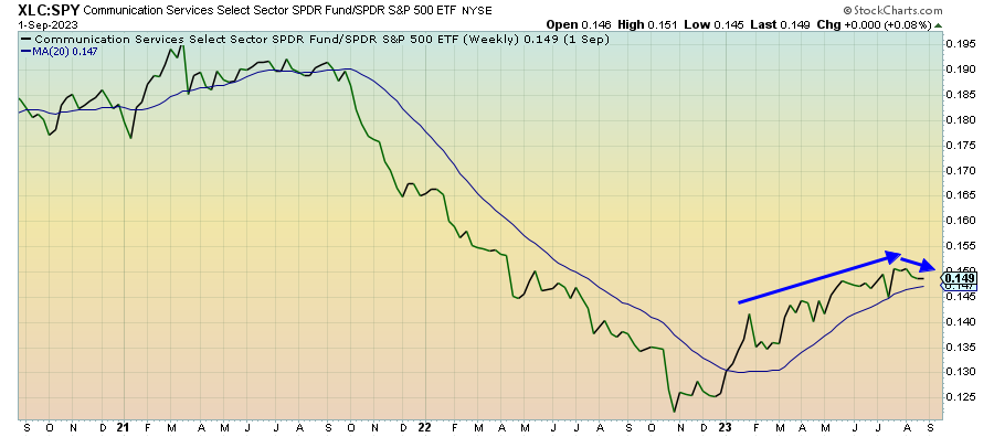 The steady uptrend that’s been in place throughout the year is clearly weakening here and threatening to finally turn south. If the market continues to digest and accept the notion that the Fed is done and things continue to cool, there’s a pretty clear path for this sector to kick higher again and add another leg to 2023’s outperformance.