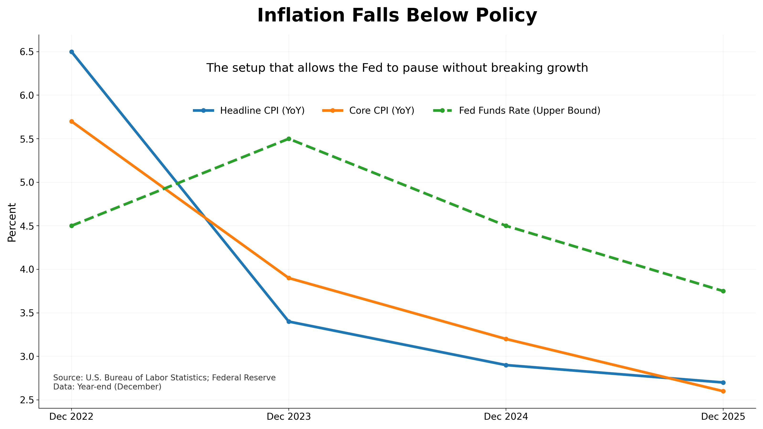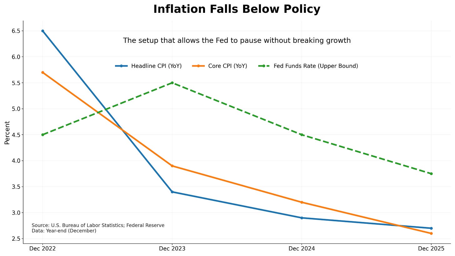 U.S. inflation continues to cool without a sharp deterioration in labor markets, reinforcing expectations that the Federal Reserve will remain on hold near term.¹