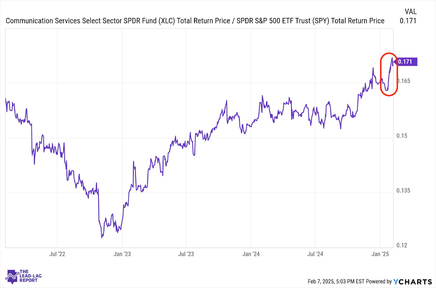 The sector’s biggest companies are coming out of this quarterly earnings season with mixed results. Facebook has continued to power higher, but Alphabet delivered lackluster results. The one positive thing for this sector and other big tech names is that investors seem accepting of the idea of continued high capex spend related to AI. DeepSeek may result in a re-evaluation of where the industry is headed, but it also seems like the big spenders are positioned to be the big winners.