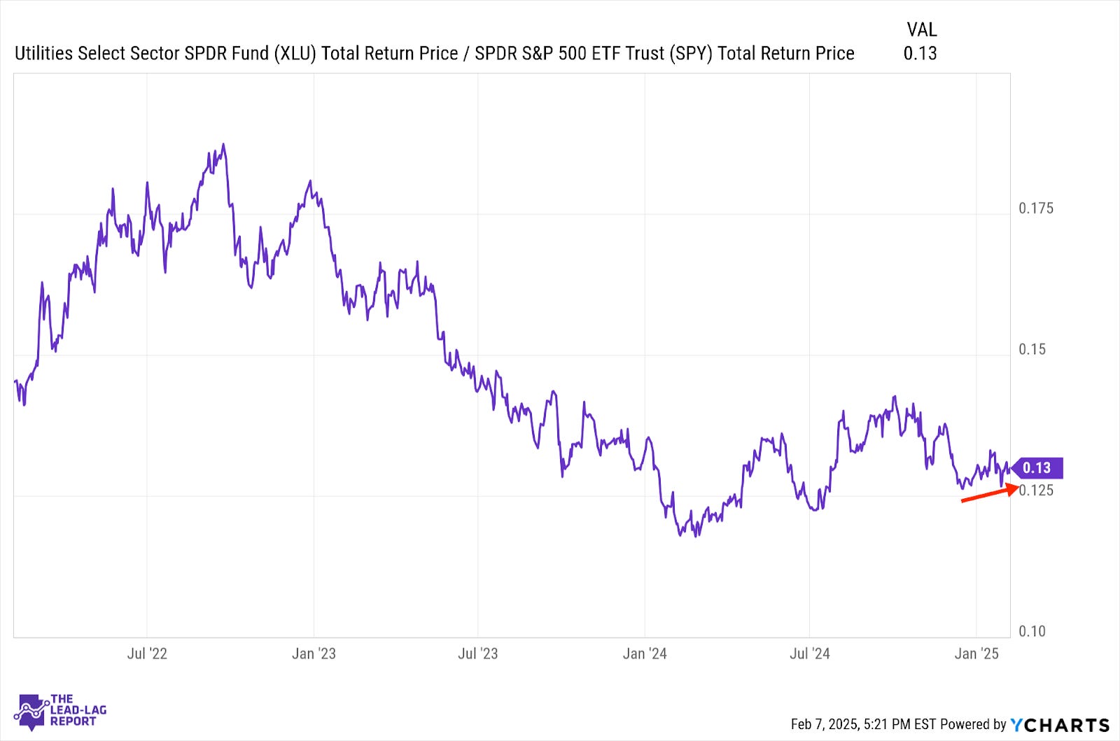 This is another example of a sector demonstrating choppy performance, but an intact uptrend. The fact that this is happening in conjunction with healthcare’s outperformance is a firmly cautious sign for U.S. equities. Equities overall are still near their highs, so we’re still in the midst of seeing this play out, but it could very well be a predictive signal of challenges ahead.