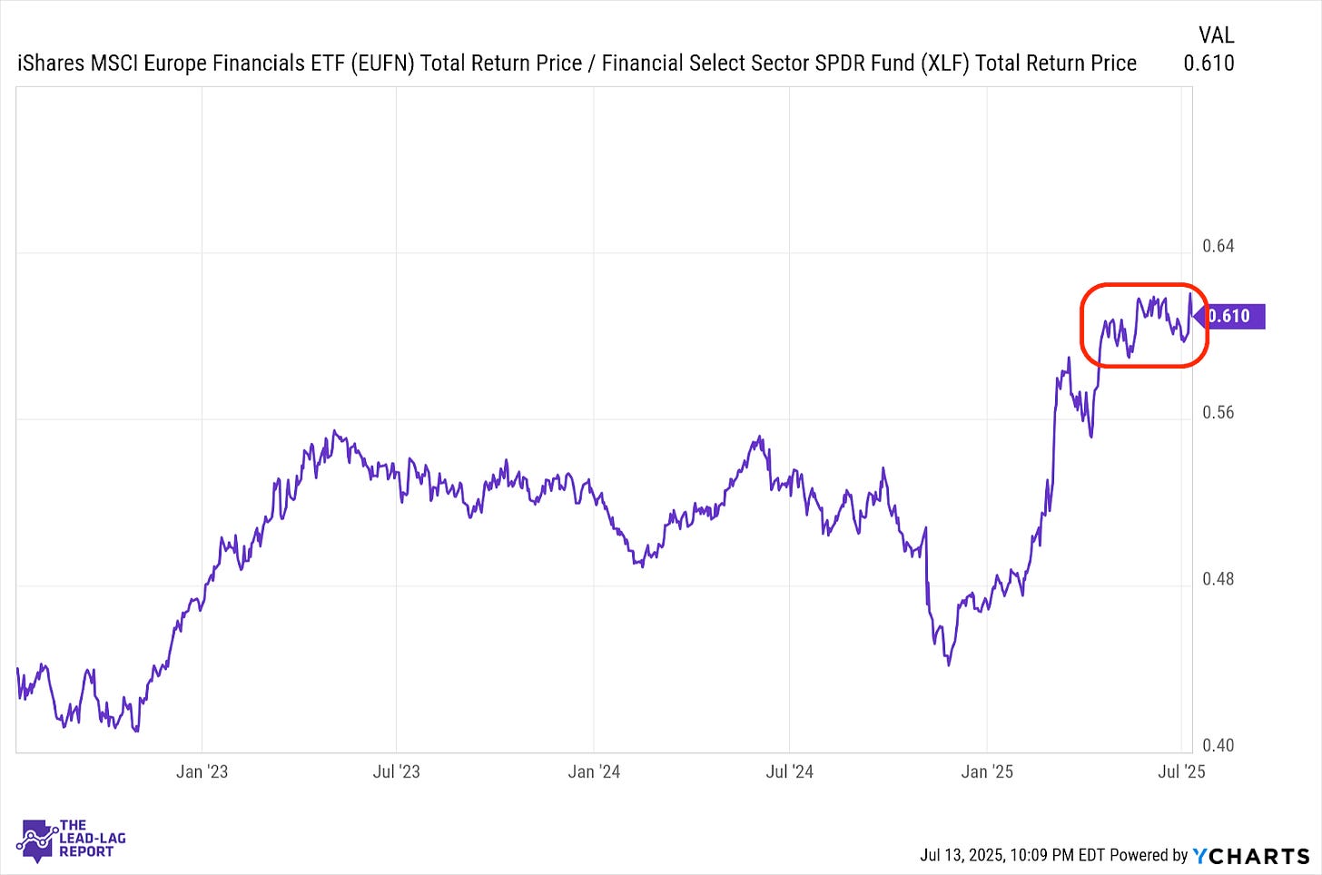 Financial stocks have turned into laggards globally with no real leadership either domestically or internationally. European banks got a relative short-term boost from the recent Trump tariff announcement, but I’m not sure that’s going to hold up longer-term. With the ECB’s rate cutting cycle likely on hold for the time being, the sector may be due for a pause.