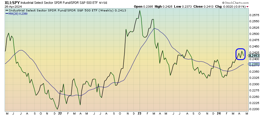 The straight-line outperformance of cyclicals looks like it’s finally starting to hit some road bumps. Tech has struggled and defensive sectors, outside of utilities, have mostly failed to keep up with the market, so that opens the door for cyclicals to regain their leadership. The resurgent inflation narrative and, more importantly, the unexpectedly disappointing Q1 GDP reading leaves me wondering if industrials are ready to step up again.