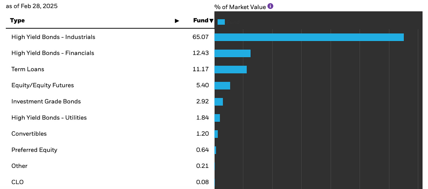 The one advantage of HYT is that it’s largely unconstrained, outside of the fact, of course, that it targets the non-investment grade market. That means it invests in U.S. and foreign bonds, fixed rate and floating rate. The latter piece is important because it gives us a tell on how the managers are thinking about interest rate risk.