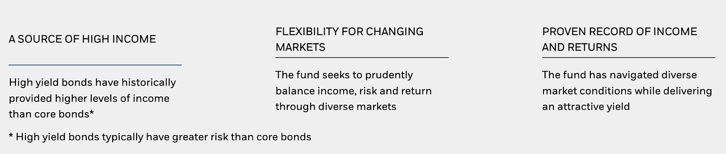 In recent months, the fund has made a modest decrease to its floating rate exposure. Not a major shift that radically alters the fund’s risk/return profile, but enough to suggest that the managers may be expecting lower rates ahead. Overall, the fund is diversified enough, both globally and in terms of credit quality, that it can qualify as a core fixed income holding. The high yield will no doubt be attractive to income seekers, but so will the relative lack of tail risk factors within the portfolio itself.