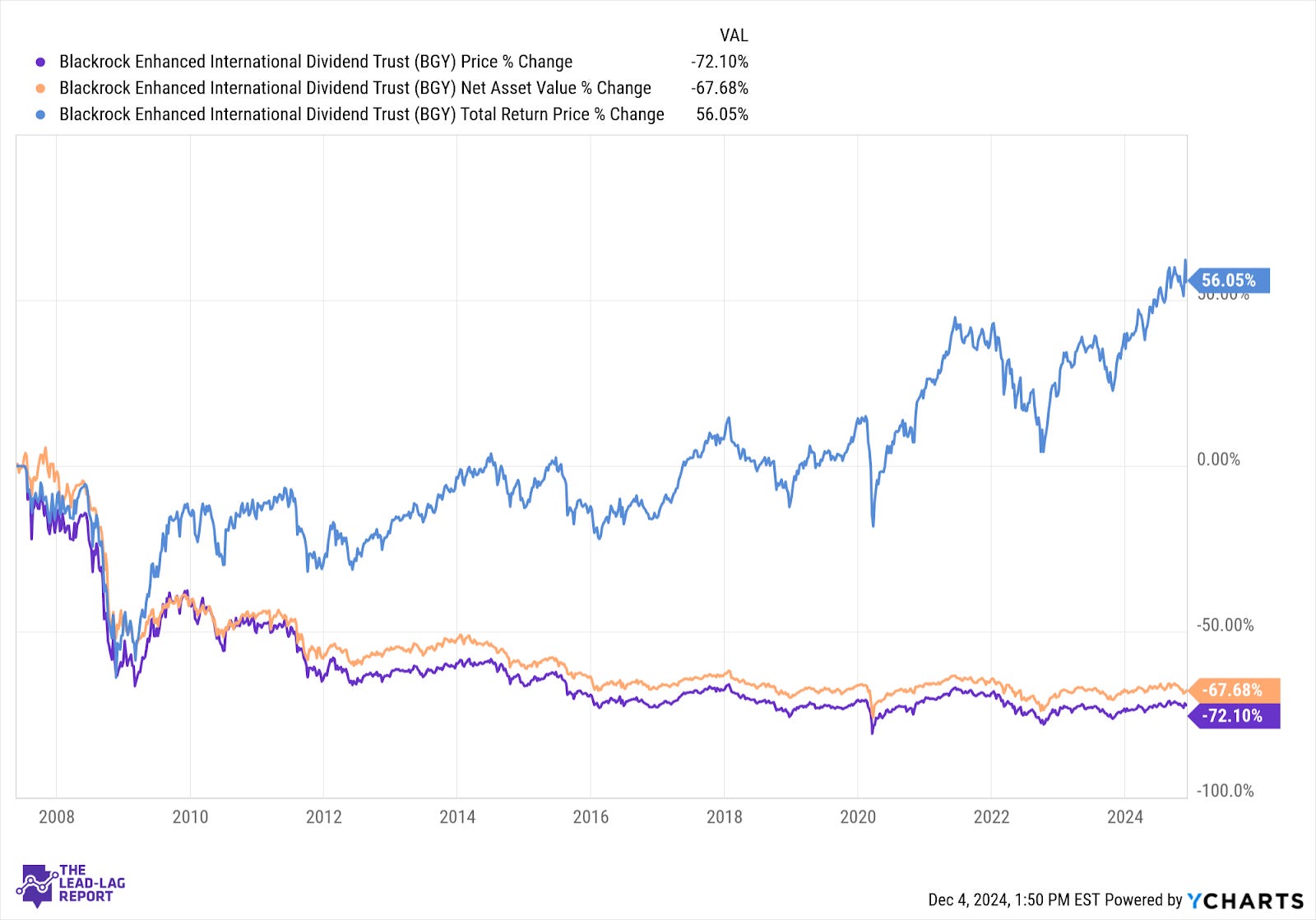 BGY was launched in May 2007. Since its inception, the fund has returned a total of 56%, which translates to just under 3% annually.