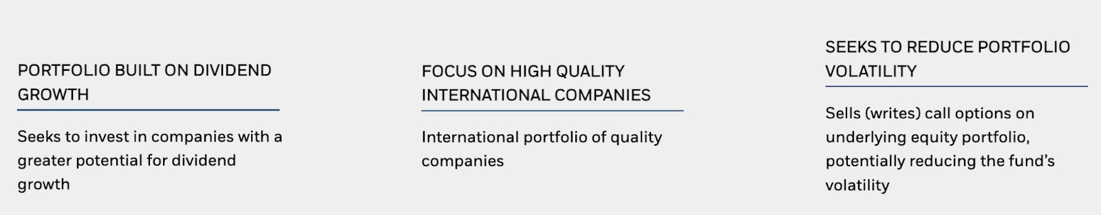 The modest overlay strikes me as the right balance. Double digit yields are fine if that’s what you’re looking for, but it’s usually not ideal to give up most share price upside potential. This setup allows the fund to generate a 7-8% yield, adequate enough for most high income seekers but also balanced enough that investors can take advantage of bull markets when they happen too. The fund’s strategy of writing calls on individual stocks, not broad indexes, is also a nice touch. It allows the managers to capture the value in specific names, another source of potential alpha.