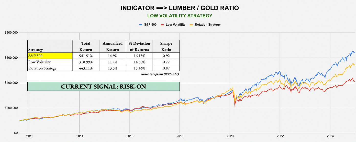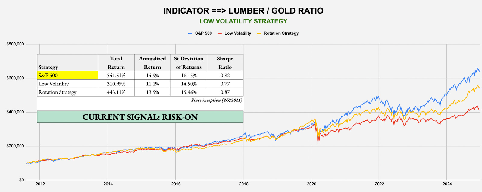 Strategy: Lumber/Gold Low Volatility - Example: Invest in S&P 500 (SPY) over Low Volatility (SPLV)