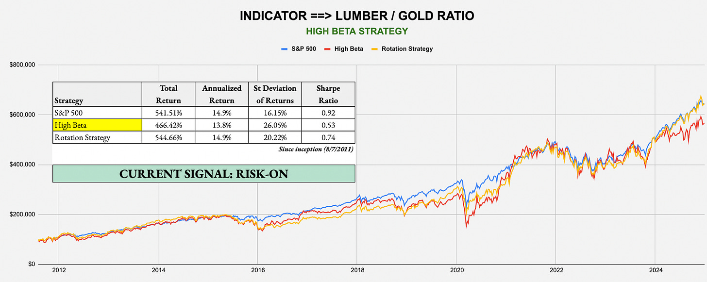 Strategy: Lumber/Gold High Beta - Example: Invest in High Beta (SPHB) over S&P 500 (SPY)