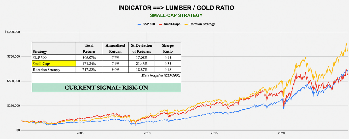 Strategy: Lumber/Gold Small-Cap - Example: Invest in Small-Caps (VSMAX) over Large-Caps (SPY)