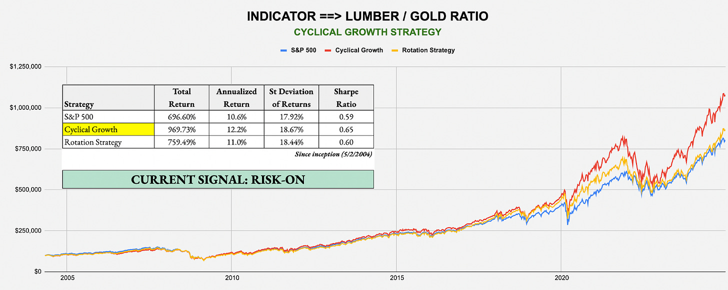 Strategy: Lumber/Gold Cyclical Growth - Example: Invest in Growth (VUG) over S&P 500 (SPY)