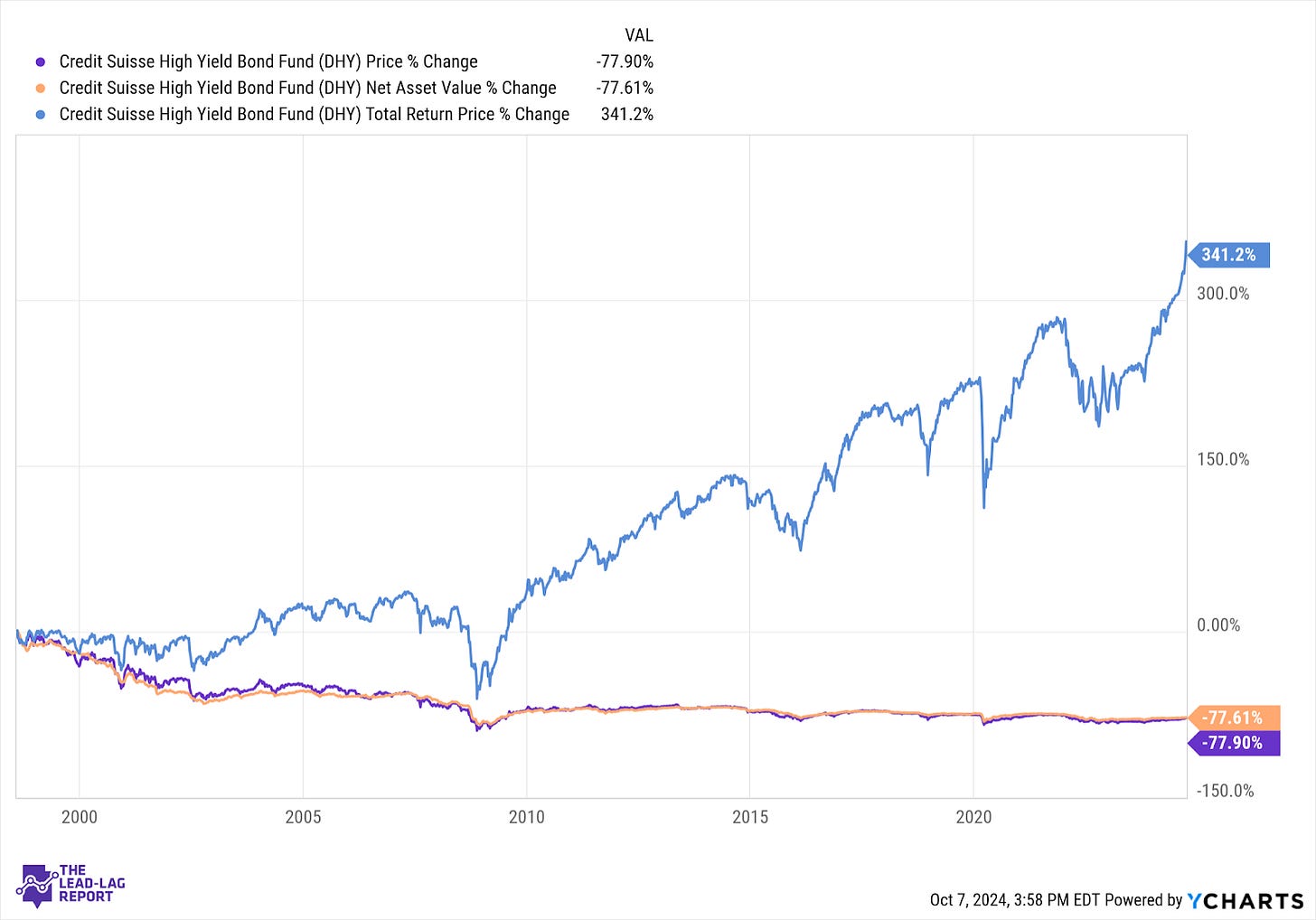 DHY was launched in July 1998. Since its inception, the fund has returned a total of 341%, which translates to around 6% annually.